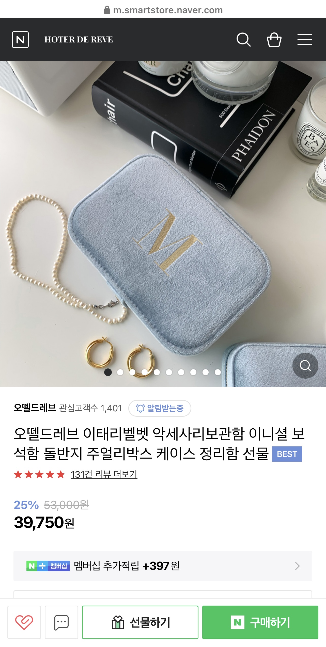 가격대가 비싸지 않고, 선물받는 사람의 이니셜을 새겨서 선물할 수 있어서 특별함이 더해지는 선물이 될 수 있습니다.