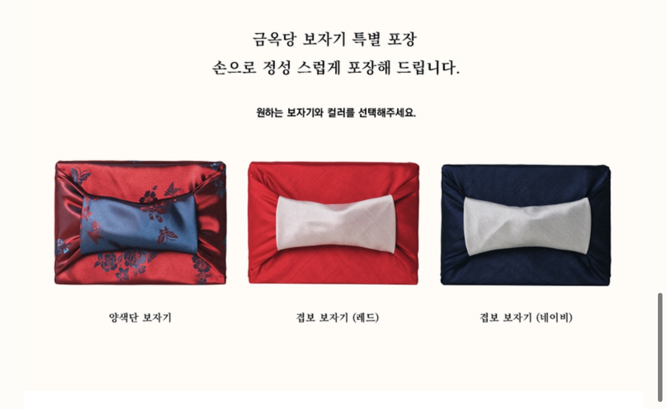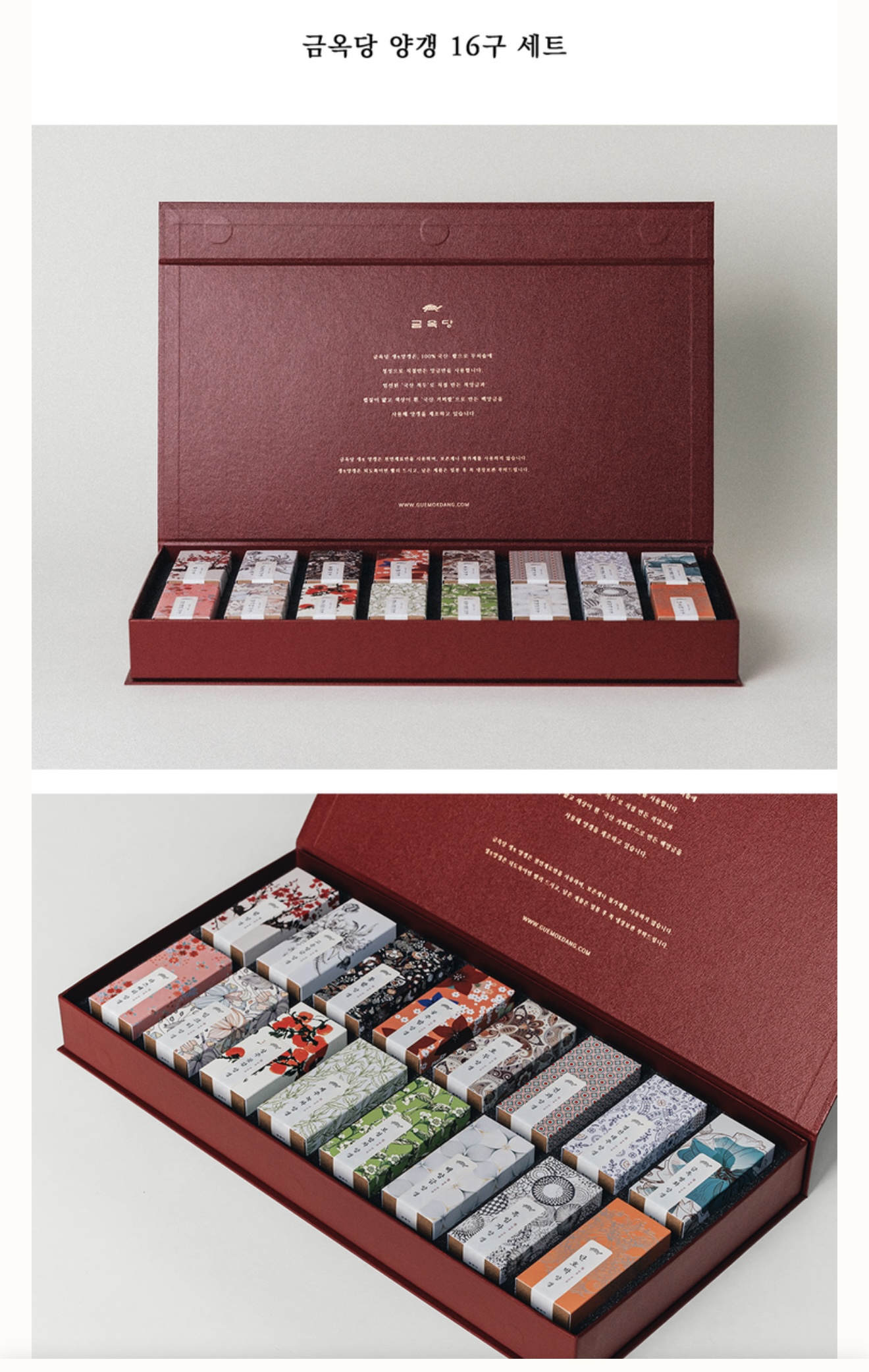 첫번째 선물 추천 아이템은 금옥당 양갱 입니다. 금옥당은 100% 국산 팥만으로 만들어져 건강하고 자연스러운 맛의 먹거리를 지향하는 곳입니다. 엄선된 재료를 사용해 달지 않고 부드러운 수제 생 양갱이라서 어른들께 선물하기 좋고 종류별 양갱이 개별포장도 너무 예쁘게 되어 있고, 상자나 보자기 포장까지 센스를 보여주는 선물이 될 수 있습니다.