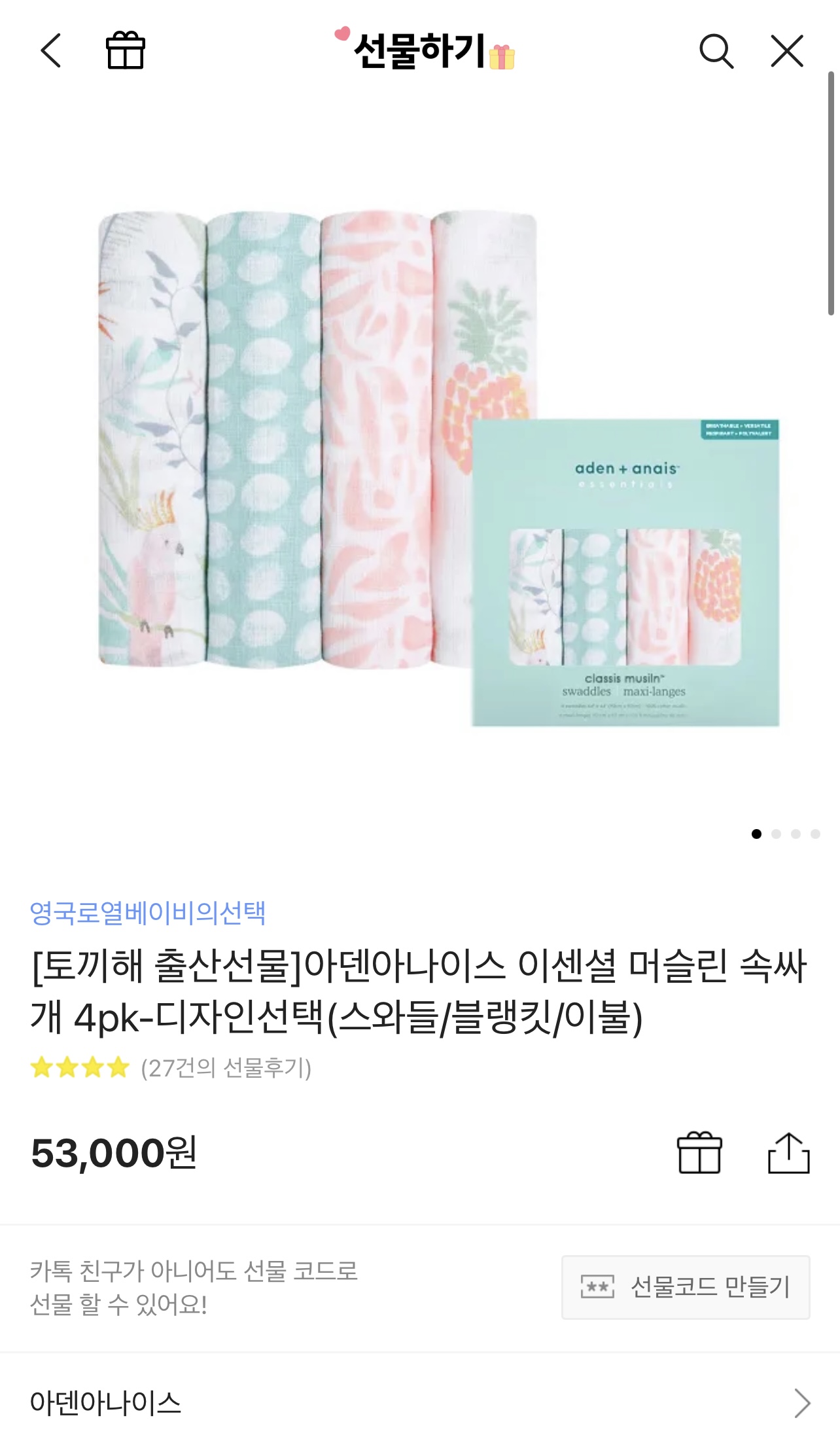 겨울에 태어난 아기가 아니고서는 겉싸개는 거의 사용을 많이 안하는데요. 속싸개는 여러모로 쓸모가 많습니다. 신생아때는 아이를 싸두기도 하고, 낮잠이불로 쓰기도 하고, 유모차나 자동차에 구비하고 다녔다가 햇볕을 잠깐 가려준다던지 추울때 덮어주기도 하고 두루두루 사용하기가 너무 좋습니다. 아이가 꽤 클때까지 사용할 수 있는데요. 저는 아덴아나이스 제품을 추천하고 싶어요. 엄마의 마음을 저격할 수 있는 예쁜 프린트의 속싸개여서 사용하는 엄마도 기분이 덩달아 좋아지는 제품이기 때문입니다.