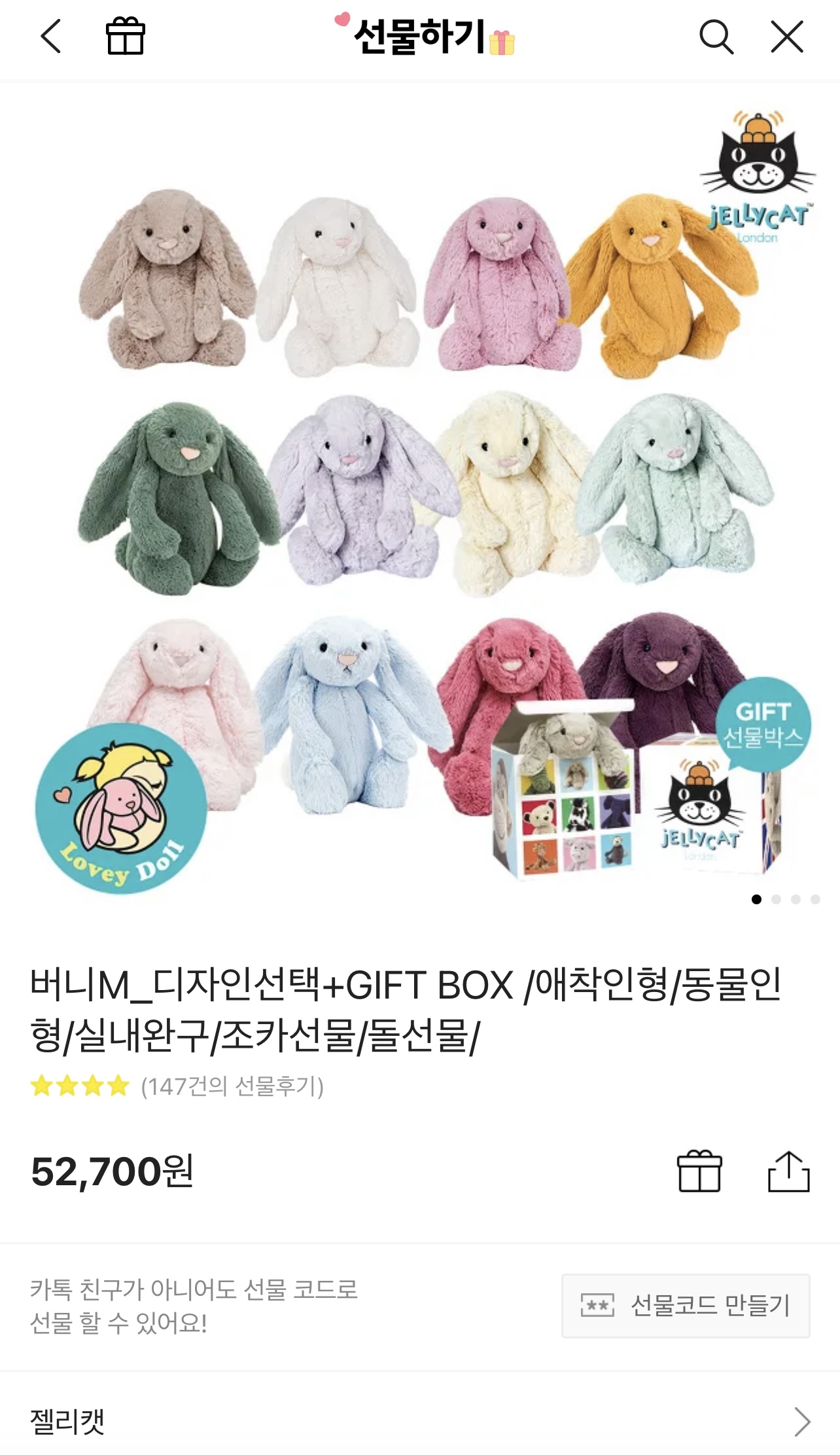 아기들은 애착인형이 있으면 심리적 안정감이 생겨서 편안함을 느끼게 됩니다. 애착인형으로 유명한 브랜드로는 젤리캣이 있습니다. 보들보들한 촉감과 예쁜 컬러감 때문에 아가들이 특히 좋아하는 인형입니다.