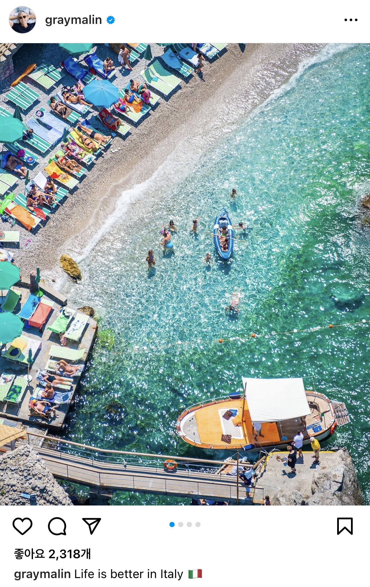 두번째로 추천드릴 사진은 Gray Malin의 사진들 입니다. 제가 처음 Gray Malin의 사진을 본 것이 바로 아래의 이탈리아 포지타노 해변 사진인데요. 보자마자 너무 마음에 들어서 사진 작가가 누구인지 찾아서 바로 사진을 구매했던 기억이 있습니다. Gray Malin는 미국 출신 작가인데요, 휴양지를 중심으로 동물, 패션, Snow 등의 사진도 많이 찍습니다.